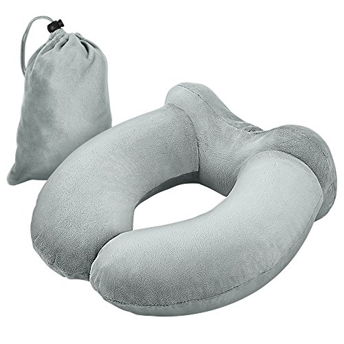Gonfiabile e Lavabile - Plemo Cuscino per il Collo Supporto Gonfiabile - Cuscino da Viaggio Portatile con Borsa da Trasporto - per Dormire in Aereo, Auto, Treno e in Ufficio (Grigio Argento)