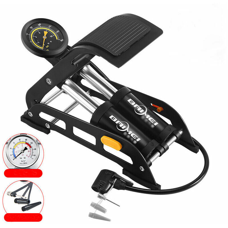 Pompa rapida a doppio cilindro - : la pompa da bicicletta a doppio cilindro è realizzata in metallo pesante di alta qualità, solida, resistente e anticorrosione. Adotta doppio cilindro rinforzato, alta pressione dell'aria, minori perdite d'aria e rapida estrazione dell'aria. Inoltre, le molle sono in acciaio per garantire un rapido ritorno del pistone, consentendogli di fornire una pressione estremamente elevata durante il pompaggio;
