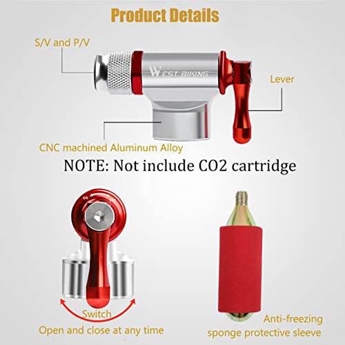 Bike Pump CO2, Gonfiatore di CO2 con Manicotto Isolato, Quick & Easy Bike Mini Pompa per Valvola Presta & Schrader, Nessuna Cartuccia di CO2 Inclusa