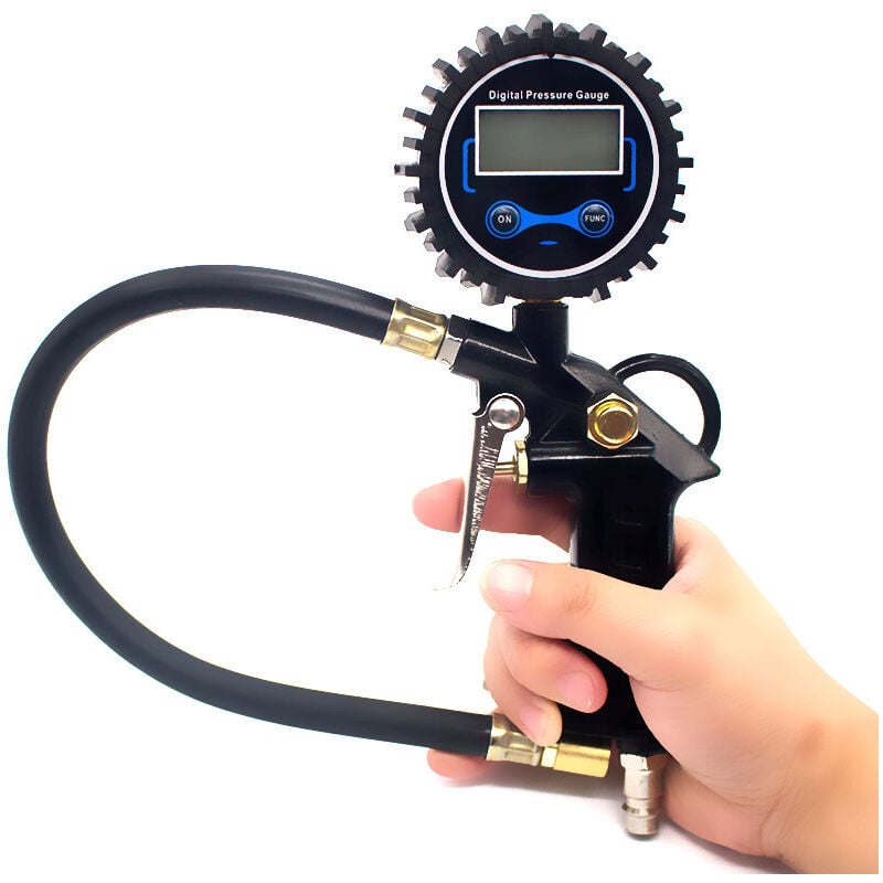 Gonfiatore per auto con manometro digitale, 200 PSI, mandrino pneumatico e tubo flessibile Specifica: Display: display digitale LCD Intervallo: pressione massima: 200 psi Misure: PSI, BAR, KPA, Kg/cm2 Risoluzione: 0,05 kg/cm² ⊃ 2;