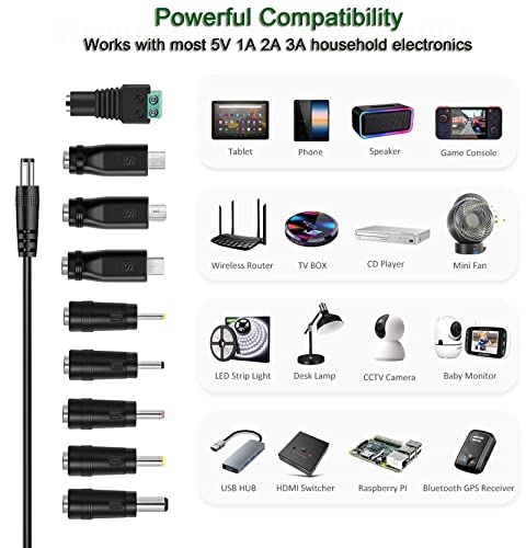[Più selettivo:] Alimentatore switching da 5 V 3000 mA 15 W, CC 5 Volt 3 A max, il caricabatterie funziona per vari dispositivi che richiedono un adattatore di alimentazione inferiore a 5 V 3 A 15 W, ad esempio 5 V 3000 mA, 2900 mA, 2800 mA, 2600 mA, 2500 mA, 2400 mA, 2300 mA, 2200 mA, 2100 mA, 3 A, 2,9 A, 2,8 A, 2,7 A, 2,6 A, 2,5 A, 2,4 A, 2,3 A, 2,2 A, 2,1 A, 2,0 A.