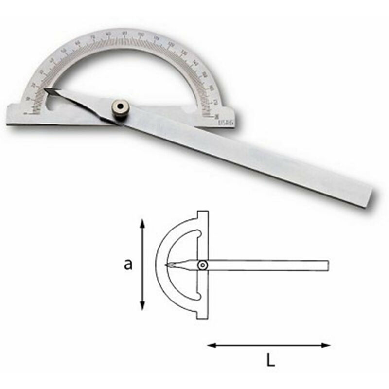 Goniometri semplici 970 A Scala di lettura cromata opaca, antiriflesso Bloccaggio a vite Codice a mm Scala Risoluzione L mm U09700002 150 0°÷180° 1° 200 U09700003 200 0°÷180° 1° 300