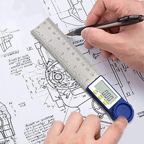 Goniometro Digitale,Hanmer Righello 200mm con Funzione di Azzeramento e Bloccaggio, Display LCD digitale, Batteria a Bottone Inclusa per la Lavorazione del Legno, la Costruzione, la Riparazione