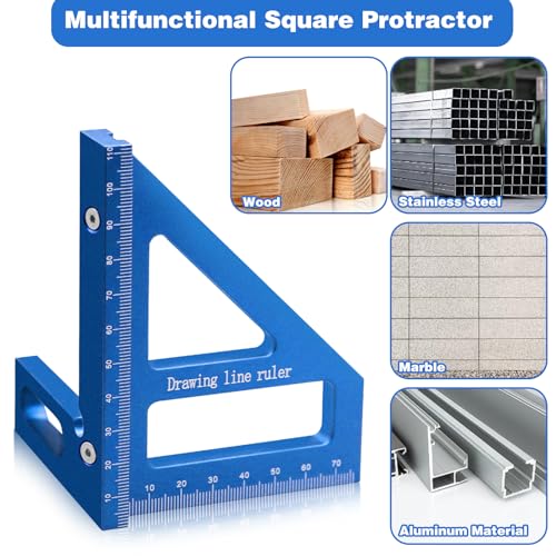 【Cosa riceverete】 Il pacchetto include un set di goniometri quadrati blu, due viti esagonali e una piccola chiave.La dimensione del righello per la lavorazione del legno è 112×79×85 mm (4. 41×3.11×3.35 pollici).Se sei insoddisfatto del prodotto ricevuto, ti preghiamo di dircelo e risolveremo il problema per te il prima possibile.