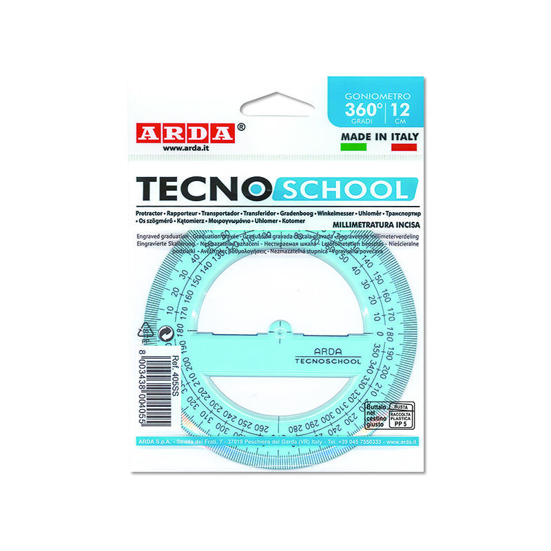 Goniometro 360° tecnoschool 12cm colore azzurro trasparente - Arda tecnoschool - goniometro 360° - 12cm