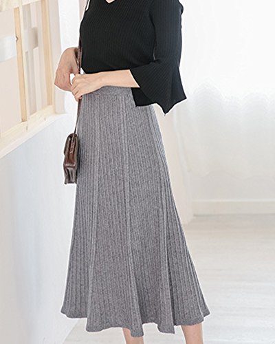 Gonna da Donna Alti in Vita Addensare Casual A-Line Lunga Gonna A Maglia Invernale Midi Gonne