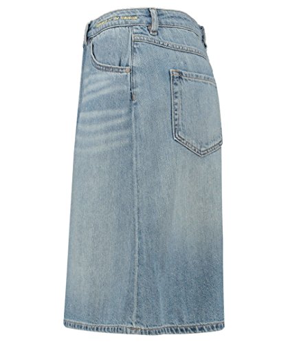 La gonna in jeans dal taglio discreto è in denim chiaro con leggeri effetti di lavaggio e tasche in classico stile a 5 tasche