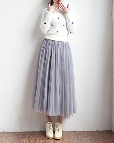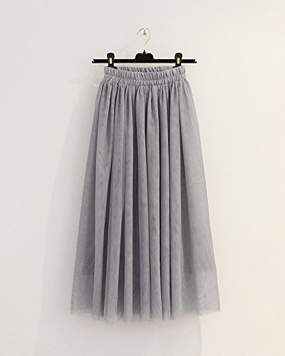 Gonna Donna Lunga Pois Tulle Velata Vita Alta Elastico Ampia Grigio