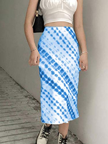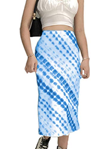 Gonna a vita alta da donna Boho con stampa a cuore Harajuku a vita alta una linea elegante Swing lungo Midi Gonne Y2K Slim Fit Dailywear, Blu C, S