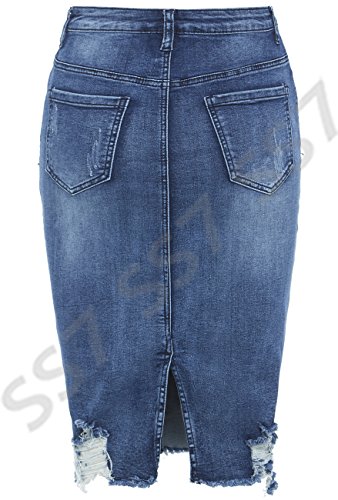 SS7 - Gonna elasticizzata in denim invecchiato, taglie dalla 38 alla 46