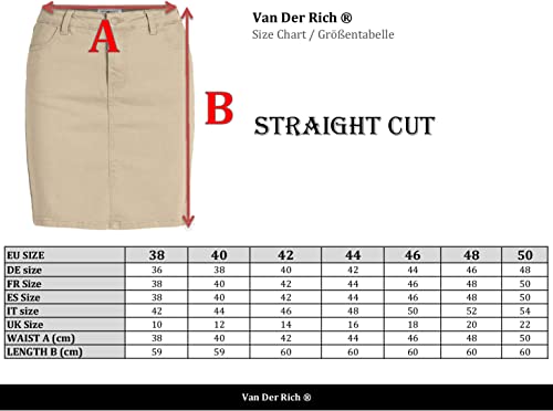 Van Der Rich ® - Gonna di Jeans al Ginocchio - Donna (Cachi, EU44=IT48)