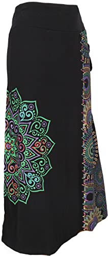 GURU SHOP Maxi Gonna, Gonna Lunga Mandala, Gonna Boho, Nero/Benzina, Cotone, Dimensione Indumenti:S / M (40), Gonne Lunghe