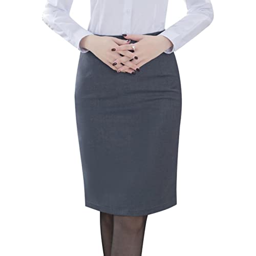 XKUN Gonna A Matita da Donna Style Plus Size Vita Alta Ginocchio Lunghezza Lavoro Office Bodycon Gonna-Gray,L