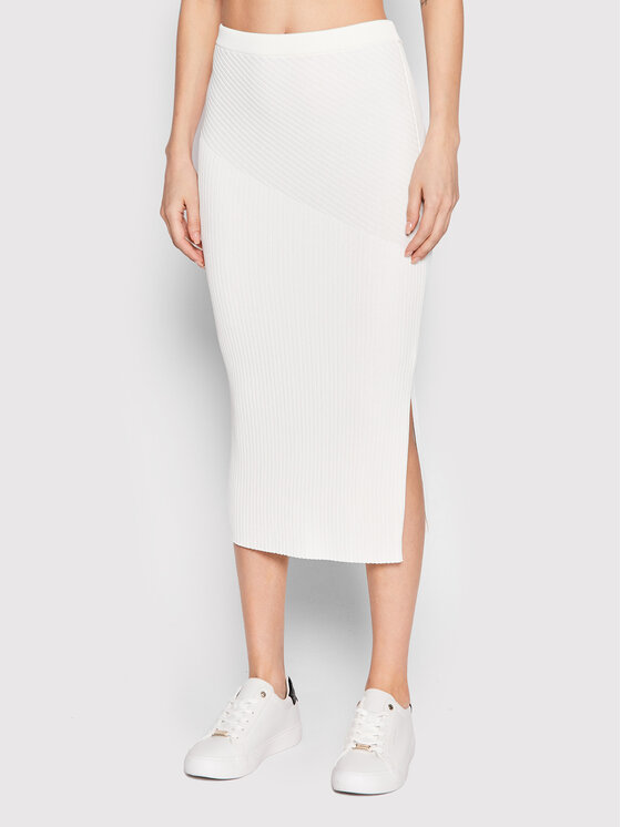 Gonna a matita Iconic Rib K20K204180 Bianco Slim Fit