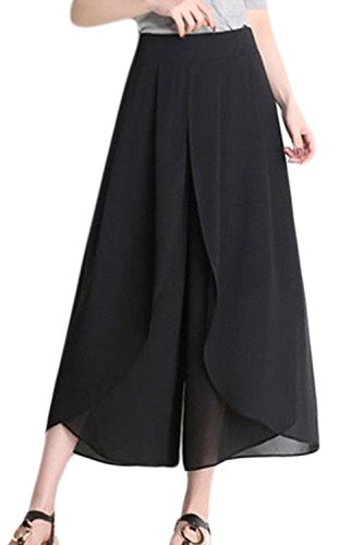 Gonna Pantaloni Donna Estivi Pantaloni Larghi Chiffon Doppio Strato Ragazze Irregular Vita Elastica High Waist Baggy Lunga Pantaloni di Stoffa Pantaloni Dritti Tendenza Libero Pantaloni Modern Stile