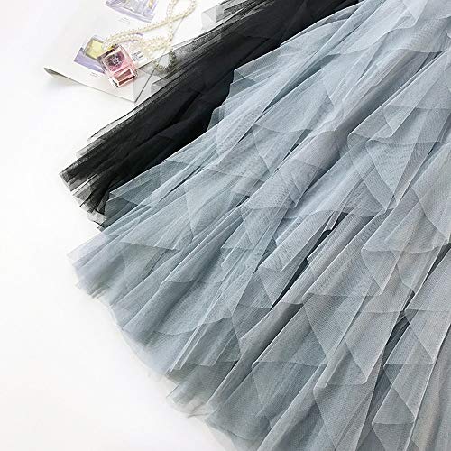 Gonna di Pizzo da Donna A-Line Layered Princess Lotus Leaf Stitching Layered Layered Tulle Midi Gonna Casual Fashion Maxi Skirt (Color: Blu)