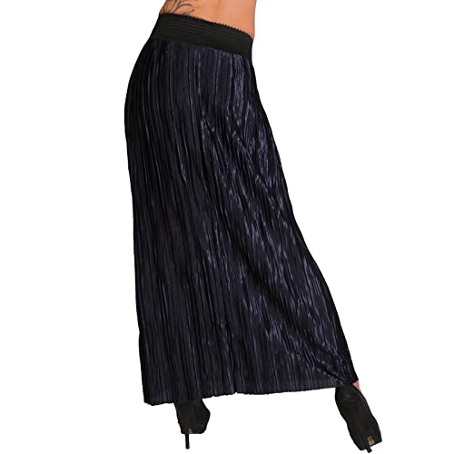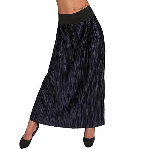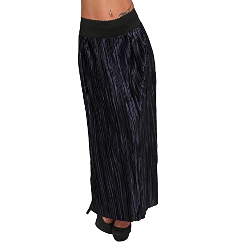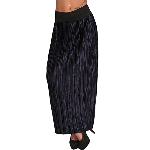Maxi gonna plissettata da donna, effetto satinato, con elastico in vita, 6268, Blu, 46-48