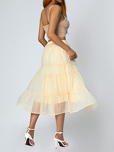 Gonna in Tulle da Donna a Vita Alta Elastica Tinta Unita Gonne Longuette a Strati a Pieghe Linea ad A Vintage Elegante Skirt Midi Casual in Pizzo Classico per Adulta Raga (Albicocca, Taglia Unica)