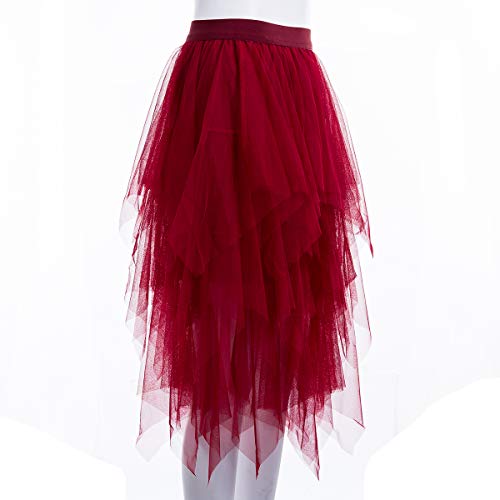 Gonna in Tulle da Donna Tutu Elastico a Pieghe in Vita Alta Retro Elegante Casual Dress A-Linea a Strati Irregolare Gonne Midi Tinta Unita alla Moda (Rosso, Taglia Unica)