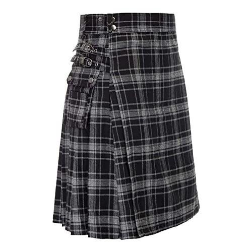 Gonnellino Kilt Scottish con Cargo Tasca Skirt Medievali da Uomo, Gonna A Pieghe Scozzese Gonna con Catena Bilaterale A Pieghe Tradizionale a Quadri
