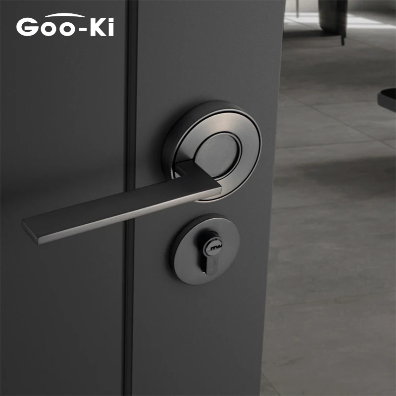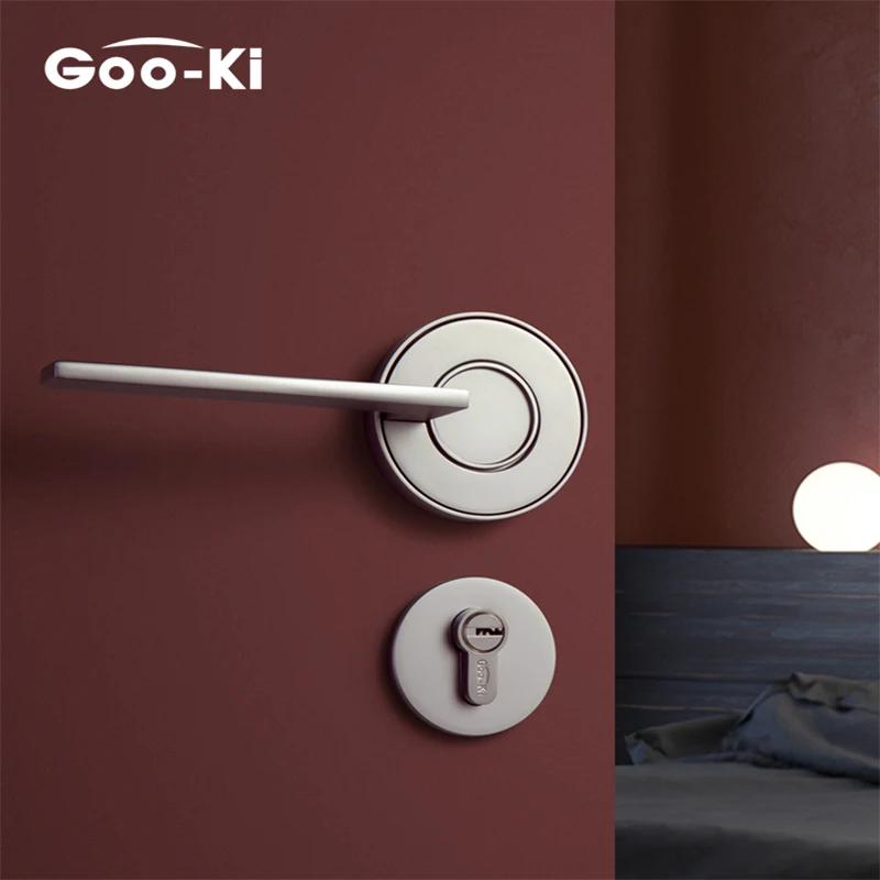 Goo-Ki Nordic Silent Door Lock Bedroom Door Handle with Lock Interior Security Door Handle Lock Cylinder Security Mute Door Lock