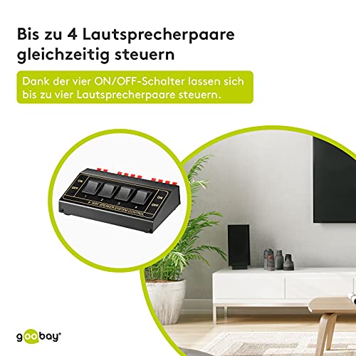 Goobay 11934 Speaker Switchbox, Per collegare fino a 4 coppie di diffusori, nero