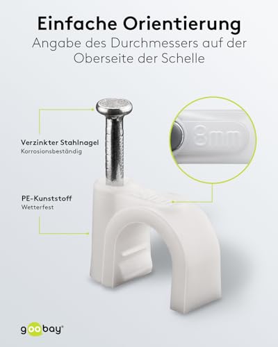 Goobay 17080 Morsetto per cavi/Supporto per cavi con diametro fino a max. 8,0 mm/Per fissare cavi e fili / 100 pezzi