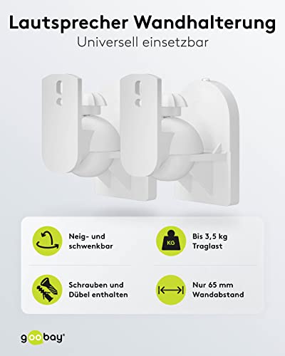 Goobay 49394 - Supporto da parete per altoparlanti, orientabile e inclinabile, per scatole fino a 3,5 kg, colore: Bianco