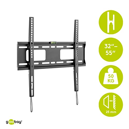 Goobay 49890 Supporto da parete per TV Pro Fixed (M), 32 a 55 pollici (81-140 cm), 50 kg, montaggio facile e sicuro, Vesa Standard, QLED/LED, nero