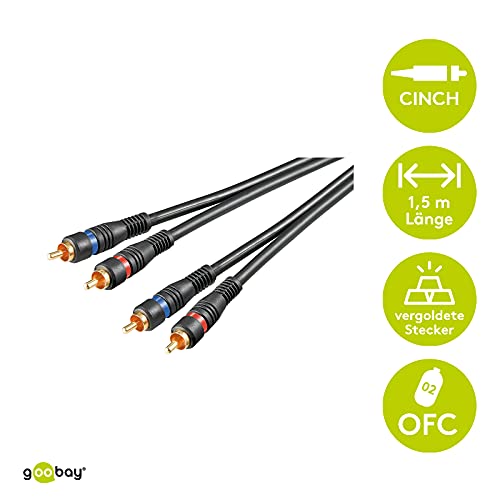 Goobay 50032 Cavo di Collegamento Stereo 2 RCA, A Doppia Schermatura, Nero, 1.5m Lunghezza del Cavo