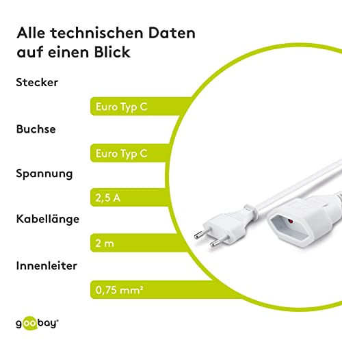 Goobay 51356 Prolunga Euro, Bianco, 2m Lunghezza del Cavo