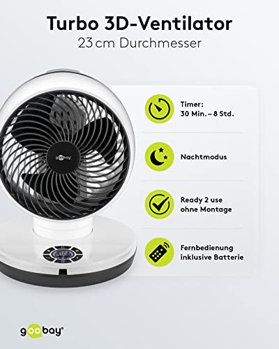 Goobay 59515 Potente ventilatore con telecomando Ø 23 cm (9 pollici) / Oscillazione multidirezionale/Motore elettrico da 70 W con 4 livelli di potenza + 2 funzioni di intervallo