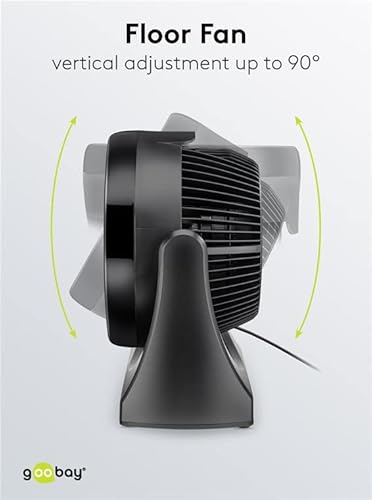 Goobay 59516 Potente ventilatore da pavimento Ø 23 cm (9 pollici) / Oscillazione girevole/Motore elettrico 30W con 3 livelli di potenza/Velocità dell'aria 5 m/s
