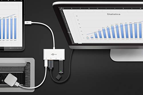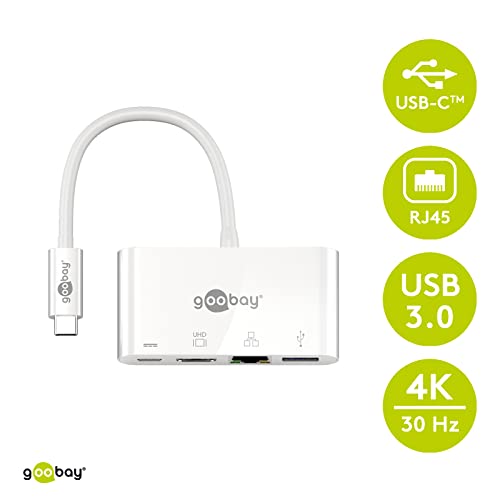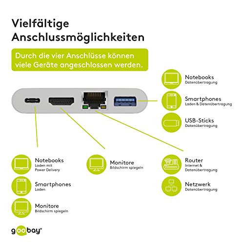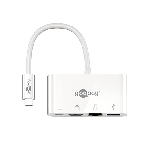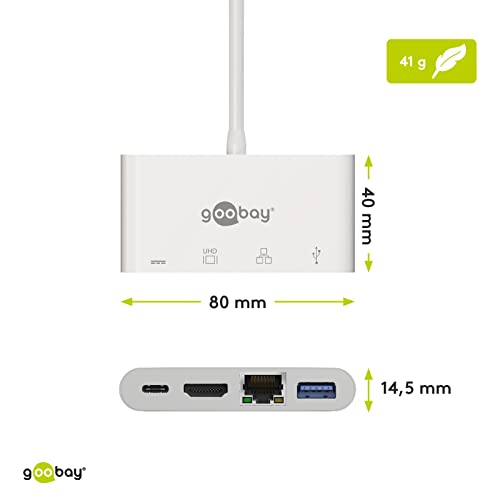 Goobay 62105 Adattatore multiporta USB-C HDMI + Ethernet, Power Delivery, Bianco, Estende un dispositivo USB-C con una porta Ethernet, una HDMI e una USB 3.0