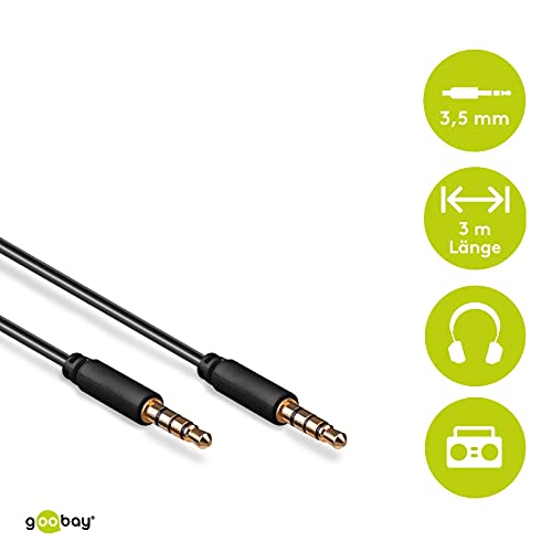 Goobay 63832 Cavo di Collegamento Audio AUX, Stereo da 3.5mm e 4 Pin, Slim, CU, Nero, 3m Lunghezza del Cavo