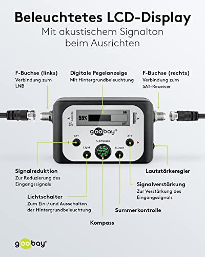 Goobay 67140 Misuratore/Rilevatore di Satelliti con Indicazione Digitale del Livello, Nero, Argento