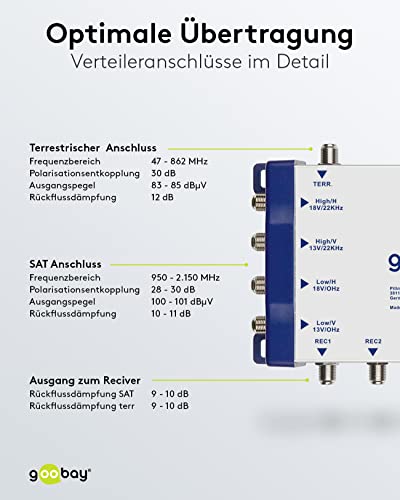 Goobay 67262 SAT multiswitch Commutatore satellitare 5 ingressi / 12 uscite, distributore per max. 12 abbonati da un satellite