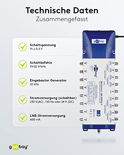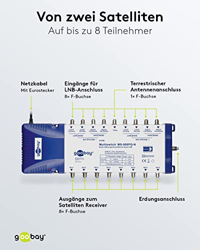 Goobay 67266 SAT Multiswitch 9 Ingresso/8 Produzione, Blu, Argento
