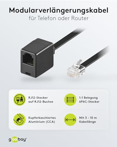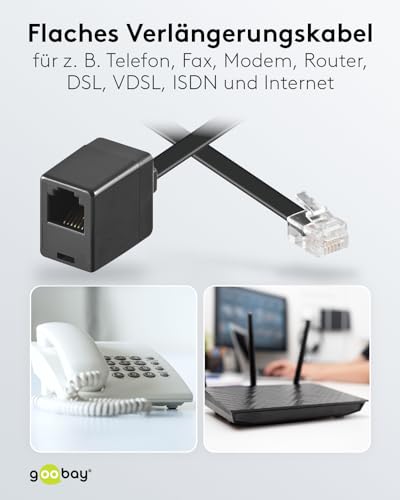 Goobay 68264 Cavo di Collegamento Modulare, Telefonico, Nero, 6m Lunghezza del Cavo