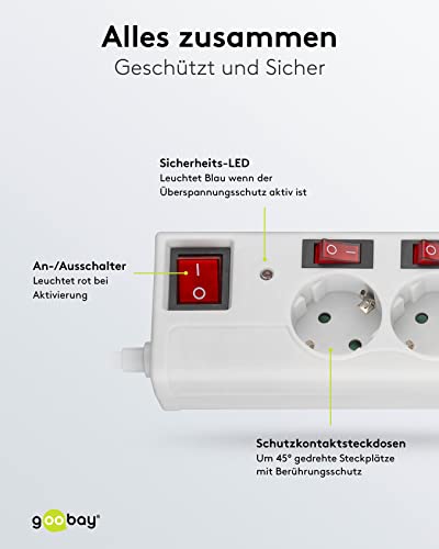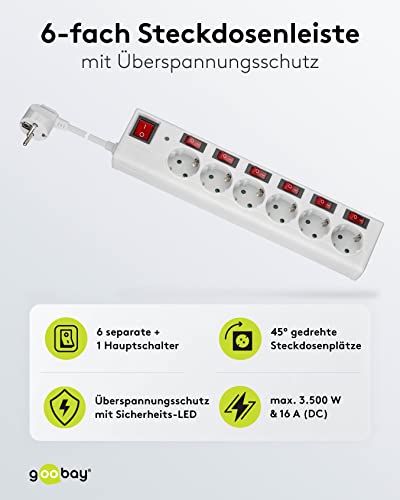 Goobay 72568 Presa multipla 6x ciabatta con interruttore separato per ogni presa + interruttore principale / protezione da sovratensione / adatta per scrivania computer e pc / cavo da 1,5 m / bianco