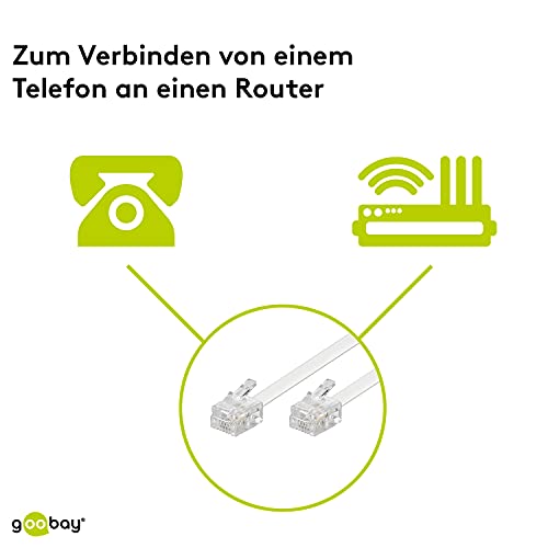 Goobay 93063 Cavo di Collegamento Modulare, Telefonico, Bianco, 10m Lunghezza del Cavo