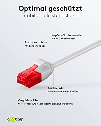 Goobay 93752 CAT 6 Slim Cavo Patch, U/UTP, Grigio, 1m Lunghezza
