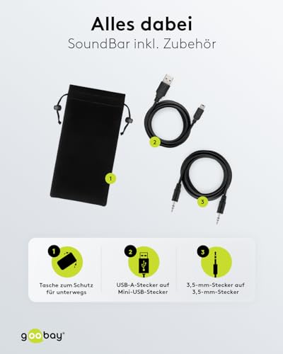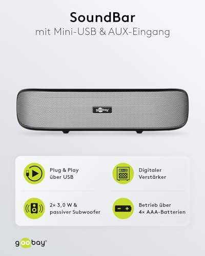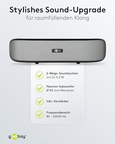 Goobay 95041 Sistema audio a 2 vie (2 x 3.0W) / SoundBar / altoparlanti stereo da 6W per PC, Mac, tablet, smartphone, TV e notebook / nero
