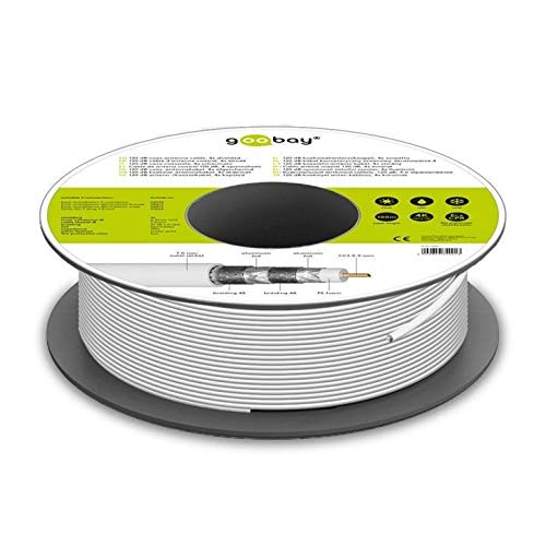 Goobay Cavo Antenna coassiale 120 Db 74021 per Le più Elevate Esigenze nel Campo dei sistemi digitali satellitari e BK, 4X schermato, CCS, 100 m, Bianco