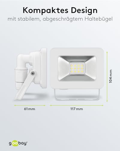 Goobay Faretto LED 53869 da 10 W - Faretto LED da 10 W - Luce bianca neutra 4000 K - 850 Lumen - Angolo di diffusione 110 gradi - Grado di protezione IP65 - Bianco