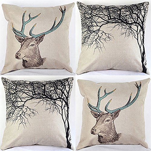 Good01, Federa per cuscino, motivo vintage con cervo, in lino, Lino, Deer, Deer