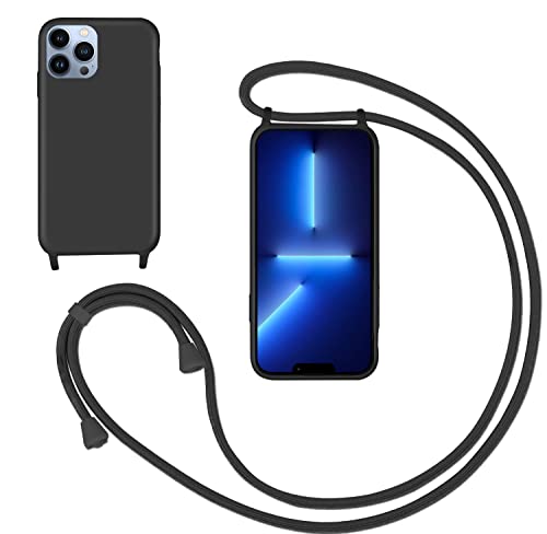 GoodcAcy Cover con Collana per iPhone 13 PRO,Custodia Silicone Liquido con Cordino per iPhone 13 PRO,Custodia con Regolabile Collana Case con Laccio Tracolla per iPhone 13 PRO,Nero
