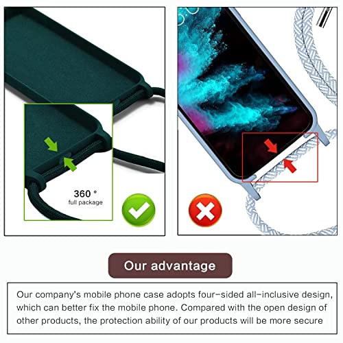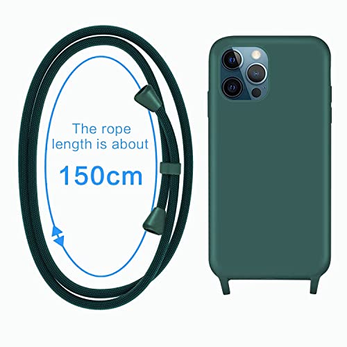 GoodcAcy Cover con Collana per iPhone 14 Pro,Custodia Silicone Liquido con Cordino per iPhone 14 Pro,Custodia con Regolabile Collana Case con Laccio Tracolla per iPhone 14 Pro,Verde