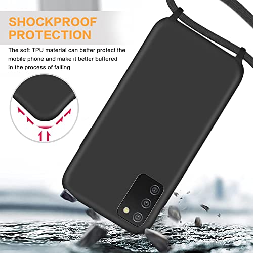 GoodcAcy Cover con Collana per Samsung Galaxy A02S,Custodia Silicone Liquido con Cordino per Galaxy A02S,Custodia con Regolabile Collana Case con Laccio Tracolla per Galaxy A02S,Nero