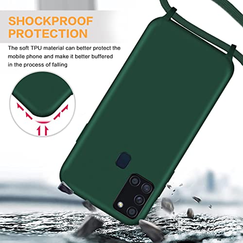 GoodcAcy Cover con Collana per Samsung Galaxy A21S,Custodia Silicone Liquido con Cordino per Galaxy A21S,Custodia con Regolabile Collana Case con Laccio Tracolla per Samsung Galaxy A21S,Verde